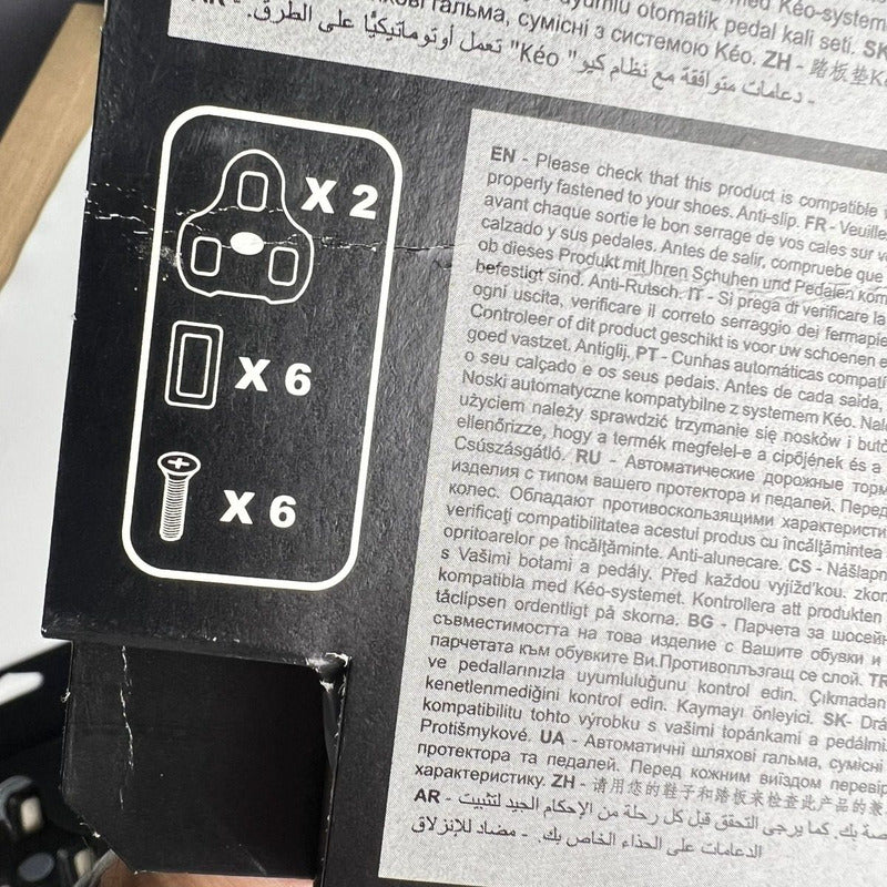 RIVOLT CYCLING DISTRIBUIDOR AUTORIZADO LOOK COLOMBIA - Grapas Chocles Look Keo Antideslizante 4.5º Ref 303503 Las calas Look Kéo Grip han sido desarrolladas con el objetivo de reducir el peso y las dimensiones del conjunto cala-pedal, siendo al mismo tiempo compatible con todas las zapatillas del mercado. La cinemática de funcionamiento es idéntica al estándar Delta, el calzado y el descalzado siguen siendo pues seguros y eficaces. Compatible con pedales LOOK KEO ¿Que incluye? - 2 calas LOOK 4.5º antideslizantes. - 6 tornillos. - 6 ajustes de cala. Características: - Uso: Carretera - Material: Poliacetal y TPU - Libertad angular: 0, 4.5 o 9 grados según color (negro, gris o rojo) - Ajuste lateral: 4 mm - Ajuste Longitudinal: 9 mm - Peso: 68 g (el par con tornillos) - Accesorios entregados con las calas: tornillos (6 tornillos de 5x11 mm y 6 arandelas) ¿Cuándo Se Envía Pedido? MercadoLibre recolecta nuestros productos a las 12 del medio día de lunes a sábado, las fechas de entrega aproximadas son la que indica la plataforma, normalmente se entregan antes. ¿Tienen alguna garantía? Todos nuestros productos cuentan con garantía por defectos de fábrica, no cubre malas instalaciones, golpes, modificaciones o desgaste por uso normal.