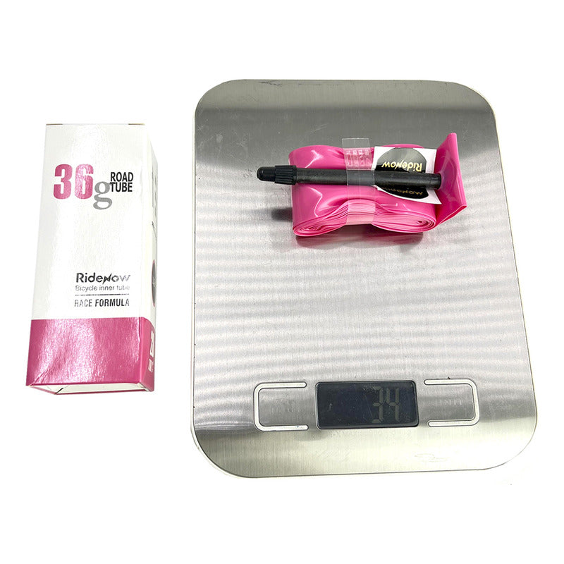 Tubolito/neumático para ruta RIDENOW solo 36 gramos Uno de los más livianos y resistentes del mercado. - Peso aproximado 35 a 36 gramos por unidad. - Para bicicletas de ruta de disco o herradura. - Válvula presta (francesa) F/v. Es el momento de bajarle peso a tu bici de una manera sencilla, hasta 70 gramos por rueda para un total de 140 gramos. El TPU ofrece una excelente resistencia a los pinchazos. Al utilizar la tecnología de fabricación integrada, no hay marcas de costura alrededor neumático y un círculo reforzado al rededor de la válvula reducen la posibilidad de pinchazos. No inflar a más de 5 PSI cuando la llanta no está instalada, puede causar daños irreversibles Compatible con: 700x18c 700x23c 700x25c 700x28c 700x32c Recomendación de uso: - Nunca inflar por fuera de la llanta a más de 5 PSI, puede causar deformaciones permanentes en el material. - No inflar por encima de los 90PSI para disfrutar de su alta protección a pinchazos, al ser en TPU puede aumentar su presión en climas cálidos hasta 8 PSI. Puede aumentar la presión un 1% por cada 3º centígrados de temperatura.
