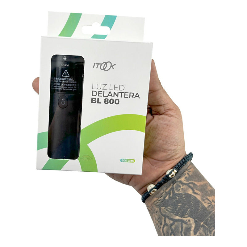 RIVOLT CYCLING DISTRIBUIDOR AUTORIZADO ITOOK COLOMBIA Linterna Delantera Para Bicicleta ITOOK BL800 Lúmenes Para Garmin. Largo Ángulo De Alcance / Resistente Al Agua. DESCRIPCIÓN: - Capacidad de batería 2500 mAH. - Carga por USB Tipo C. - Indicador de carga LED azul. - Brillo alto 800 LM tiempo de descarga 1 hora 30 Minutos. - Brillo medio 630LM tiempo de descarga 2 horas. - Brillo Bajo 480 LM tiempo de descarga 2 horas 45 minutos. - Brillo Eco 200 Lm tiempo de descarga 6 horas 45 minutos. ¿Qué incluye el paquete? - 1 cable de carga USB Tipo C. - 1 linterna iTook BL800. - 1 soporte para dirección. Dimensiones: largo 10 x3 x3 cms Peso aproximado: 101 gramos. ¿Cuándo Se Envía Pedido? MercadoLibre recolecta nuestros productos a las 12 del medio día de lunes a sábado, las fechas de entrega aproximadas son la que indica la plataforma, normalmente se entregan antes. ¿Tienen alguna garantía? Todos nuestros productos cuentan con garantía por defectos de fábrica, no cubre malas instalaciones, golpes, modificaciones o desgaste por uso normal.
