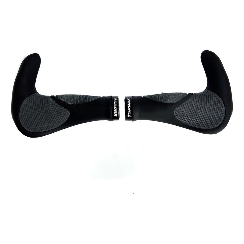 - GRIPS SPARK G232 ERGONÓMICOS CON SOPORTE. Diseño ergonómico con cachos para un soporte superior en la bicicleta, adicional con cierre de seguridad para evitar movimientos indeseados. Compatible con cualquier manillar de bicicleta MTB estándar. DESCRIPCIÓN: - Modelo: G232. - Diámetro Interno 22mm. - Largo 135mm. - Color Negro