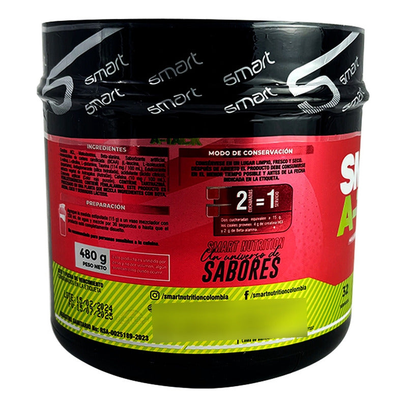 RIVOLT CYCLING DISTRIBUIDORA AUTORIZADO SMART NUTRITION COLOMBIA CREATINA SMART A-TACK SABOR SANDIA 480 GRAMOS. Es una mezcla en polvo elaboraba a partir de fuentes de la más alta calidad y entre las que sobresale la Creatina HCL, Beta-Alanina, Citrulina, Glutamina Y Bcaas DESCRIPCIÓN: - La bebida energizante no previene los efectos generados por el consumo de bebidas alcohólicas. - No se recomienda el consumo de bebidas energizantes con bebidas alcohólicas. - Este producto solo podrá ser comercializado, expendido y dirigido a población mayor de 14 años. - Este producto no es recomendado para personas sensibles a la cafeína. PREPARACIÓN: Agregue la medida estipulada (15 g) a un vaso mezclador con 250 mL de agua y mezcle por 30 segundos o hasta que el producto esté completamente disuelto. No recomendado para personas sensibles a la cafeína. ¿Cuándo Se Envía Pedido? MercadoLibre recolecta nuestros productos a las 12 del medio día de lunes a sábado, las fechas de entrega aproximadas son la que indica la plataforma, normalmente se entregan antes. ¿Tienen alguna garantía? Todos nuestros productos cuentan con garantía por defectos de fábrica, no cubre malas instalaciones, golpes, modificaciones o desgaste por uso normal.