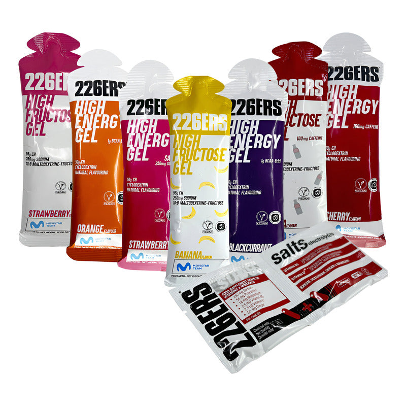 RIVOLT CYCLING DISTRIBUIDOR AUTORIZADO 226ERS COLOMBIA - COMBO 1 DUPLO JENGIBRE SALES Y ELECTROLITOS 226ERS + 3 GELES ENERGETICOS 226ERS, SABORES SURTIDOS SABORES: NARANJA, STRAWBERRY, CHERRY, BLACKCURRANT, FRUCTOSE BANANA, FRUCTOSE COLA, FRUCTOSE STRAWBERRY. High Energy Gel son geles energéticos en los que la fuente principal de hidratos de carbono es la ciclodextrina, un carbohidrato de última generación que mejora la reposición de glucógeno de manera más eficiente. Ofrece una liberación de energía prolongada, perfecta durante y después del ejercicio. Menos picos de insulina, favoreciendo el uso de glucosa a nivel celular en un tiempo más corto y manteniendo el nivel de azúcar sanguíneo durante más tiempo. Rápido vaciado gástrico por su gran peso molecular y su baja osmolaridad, favoreciendo la digestión y reduciendo los efectos secundarios gastrointestinales. No inhibe la combustión de grasa. En formato stick de 76g y con 200 kcal, contienen 50 g de carbohidratos por gel en proporción 1:1 para hidratos de carbono complejos y simples. High Energy Gel cuenta con el sello Cologne List, es la primera y más grande plataforma de prevención de dopaje para suplementos nutricionales en el mundo. Formulados con aromas naturales para una mejor asimilación y unos sabores muy naturales. *- DUPLO DE SALES Y ELECTROLITOS 226 ERS Las SUB9 SALTS ELECTROLYTES son una evolución de las SALTS ELECTROLYTES pensando en una ingesta continuada durante ejercicios más extensos. Las SUB9 SALTS ELECTROLYTES son una evolución de las SALTS ELECTROLYTES pensando en una ingesta continuada durante ejercicios más extensos. En cuanto a los minerales, se ha incrementado la cantidad de sodio hasta los 250 mg y la de magnesio hasta 18,15 mg, reducido el potasio hasta 54,01 mg buscando una proporción inferior a la de las anteriores sales en cápsulas. MODO DE USO: Tomar 1 capsula 30’ (minutos) antes y después del ejercicio. Y 1 cápsula cada 30‘ - 60’ (minutos) durante el ejercicio, con al menos, un vaso de agua durante su ingesta (150ml). CANTIDAD NETA: 2,2g (2 cápsulas). FORMATO: Duplo (2 cápsulas). Monodosis, cápsulas individuales. CONSERVACIÓN DEL PRODUCTO: Mantener bien cerrado en lugar fresco y seco. ADVERTENCIAS: Los complementos alimenticios no deben utilizarse como sustitutos de una dieta variada y equilibrada y un modo de vida sano. No superar la dosis diaria expresamente recomendada: 8 unidades. Mantener fuera del alcance de los niños más pequeños. ¿Cuándo Se Envía Pedido? MercadoLibre recolecta nuestros productos a las 12 del medio día de lunes a sábado, las fechas de entrega aproximadas son la que indica la plataforma, normalmente se entregan antes. ¿Tienen alguna garantía? Todos nuestros productos cuentan con garantía por defectos de fábrica, no cubre malas instalaciones, golpes, modificaciones o desgaste por uso normal.