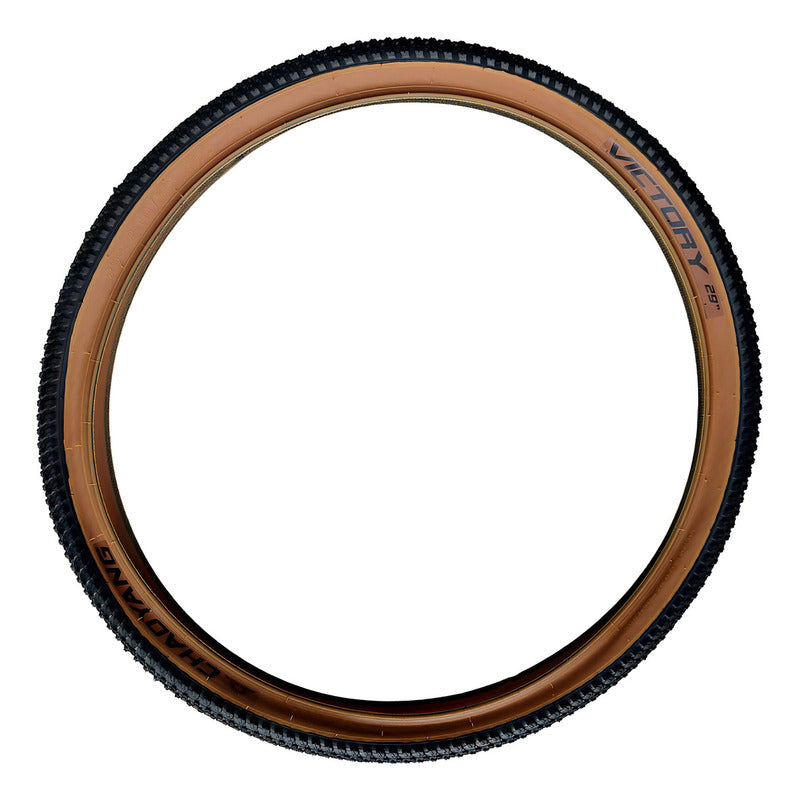 - LLANTA CHAOYANG VICTORY 29x2.1 CARA CAFÉ. Chaoyang Victory Skinwall Rim para bicicleta, 29 x 2,10, color marrón negro, es una excelente opción para quienes buscan rendimiento en terrenos compactos o sueltos. Con una excelente relación costo-beneficio, el Victory tiene un diseño que promueve una aceleración rápida y cómoda. Sus tacos pequeños y poco espaciados permiten una conducción suave, mientras que los tacos más prominentes de los laterales garantizan el agarre en las curvas. DESCRIPCIÓN: - Marca: Chaoyang. - Modelo: Victory Brown Band. - Tpi 30. - Modalidad: Bicicleta De Montaña. - Tamaño: 29 x 2.10. - Color: Negro Con Laterales Marrón. - Con Alambre