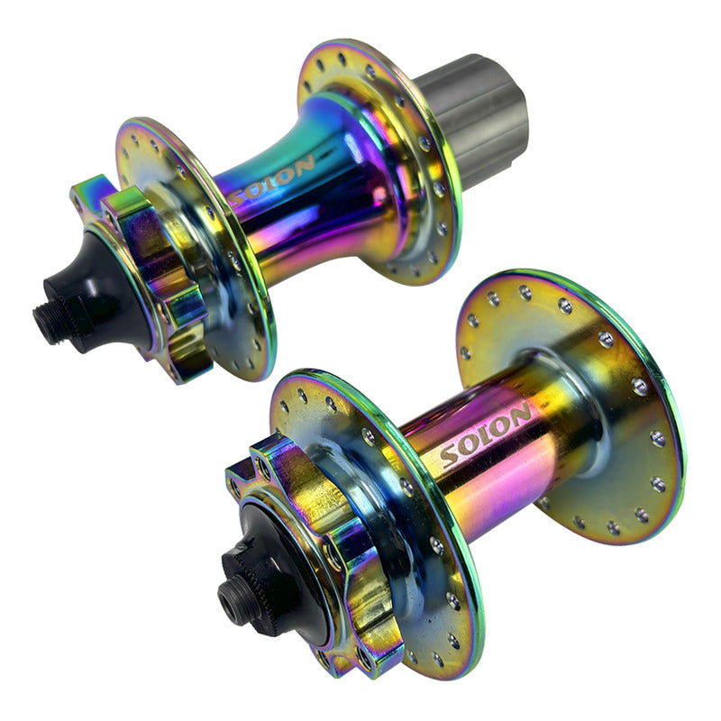 RIVOLT CYCLING DISTRIBUIDOR AUTORIZADO SOLON COLOMBIA - JUEGO DE MANZANAS DELANTERA Y TRASERA SOLON 905 TORNASOL, PARA MTB, 6 TRINQUETES , 6 TORNILLOS , 32 HUECOS. DESCRIPCIÓN: * DELANTERA: - 32 Huecos. - O.L.D : 100mm. - Con 2 Sellamientos Cerrados. - Peso Aproximado: 257 Gramos. * TRASERA: - 32 Huecos. - O.L.D : 135mm. - Núcleo: En Acero 6 Trinquetes. - Para Pacha Cassette. - Con 4 Rodamientos Sellados. - Peso Aproximado: 475 Gramos PESO DE LAS PUNTILLAS: 115 Gramos. ¿Cuándo Se Envía Pedido? MercadoLibre recolecta nuestros productos a las 12 del medio día de lunes a sábado, las fechas de entrega aproximadas son la que indica la plataforma, normalmente se entregan antes. ¿Tienen alguna garantía? Todos nuestros productos cuentan con garantía por defectos de fábrica, no cubre malas instalaciones, golpes, modificaciones o desgaste por uso normal.