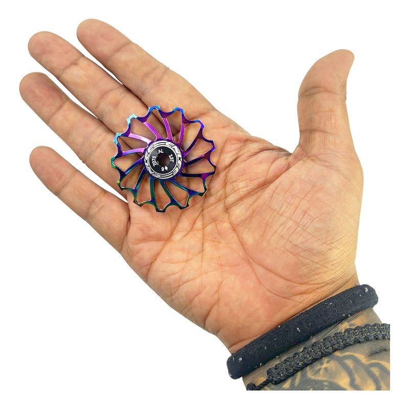 RIVOLT CYCLING DISTRIBUIDOR AUTORIZADO SPARK ENLEE COLOMBIA - ROLDANA DE RODAMIENTO PARA TENSOR, ENLEE TORNASOL 13 DIENTES. Rodaja marca Enlee con rodamiento sellado, compatible con Shimano. DESCRIPCIÓN: - Marca: Enlee - Dientes: 13. - Peso Aproximado: 9 Gramos. - Color: Tornasol. ¿Cuándo Se Envía Pedido? MercadoLibre recolecta nuestros productos a las 12 del medio día de lunes a sábado, las fechas de entrega aproximadas son la que indica la plataforma, normalmente se entregan antes. ¿Tienen alguna garantía? Todos nuestros productos cuentan con garantía por defectos de fábrica, no cubre malas instalaciones, golpes, modificaciones o desgaste por uso normal.