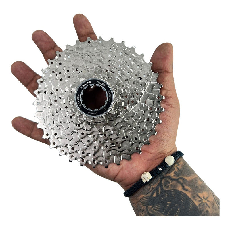 RIVOLT CYCLING DISTRIBUIDOR AUTORIZADO SHIMANO COLOMBIA PACHA SHIMANO 9 VELOCIDADES 11/34 CS-HG400 El Shimano CS-HG400-9 es un cassette al de nivel Alivio de 9 velocidades disponible en cinco gradaciones diferentes. Fue diseñado para el uso en MTB y trekking y, gracias a la tecnología Hyperglide (HG), tiene una convincente función de conmutación. A esto se añade la tecnología Mega 9 Lite, que representa una estrecha gradación de engranajes incluso con una gran relación de engranajes total. Especificaciones: - Marca: SHIMANO - Velocidades: 9 Velocidades - Color: Plata - Relación: 11-34 (11-13-15-17-20-23-26-30-34) - Número de fabricante: I-CSHG4009134 - Casette de Alta calidad y rendimiento - Peso: 380 gr. - Shimano Original - Campo de aplicación: Cross Country, Touring/Trekking - Cassette HG al nivel de Alivio con piñones de acero niquelado - Diseño ahorrador de peso - Montaje rápido - Gradaciones adecuadas para 26" /27.5" /29" - Anillo de bloqueo niquelado Tecnologías: Mega 9 Lite Cuanto más grande sea la rueda, más ancho de banda de transmisión debe ofrecer el cassette para asegurar un pedaleo fácil. Las combinaciones de relaciones de cambio especializadas en los diámetros de cubiertas reducen el número de cambios de marcha necesarios con gradaciones ajustadas en la parte delantera. El cassette de 9 velocidades Mega 9 Lite permite una estrecha gradación de los niveles de engranaje incluso con una gran relación de engranaje total. HG En combinación con las cadenas Shimano Hyperglide (HG), los piñones de los cassettes HG garantizan una conmutación con el dedo índice rápida y precisa. Los piñones especiales, diseñados por ordenador, tienen perfiles de dientes específicos, así como ayudas de escalada específicamente posicionadas que optimizan la guía de la cadena durante el cambio. El resultado son cambios de marcha rápidos, suaves y silenciosos. Piñones convencionales permiten que la cadena se desplace primero en las puntas de los dientes antes de que se asiente en el piñón. Los piñones HG guían la cadena de inmediato de forma directa y sin pasar por el siguiente piñón. ¿Tienen alguna garantía? Todos nuestros productos cuentan con garantía por defectos de fábrica, no cubre malas instalaciones, golpes, modificaciones o desgaste por uso normal